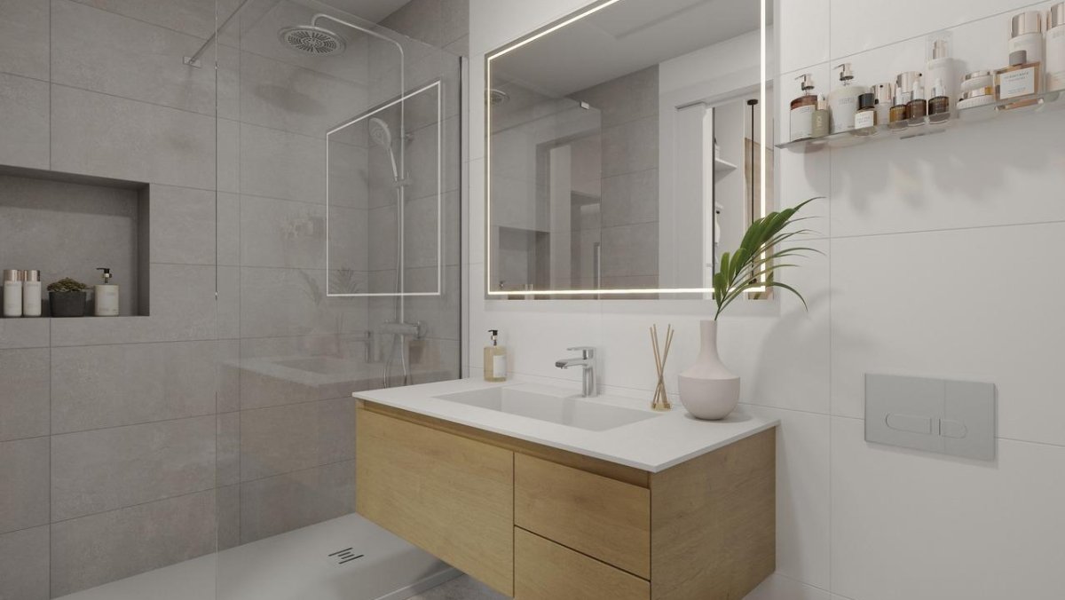NIEUWBOUW VILLA'S IN LOS ALCAZARES Nieuwbouwproject van 12 exclusieve vrijstaande villa's, elk met een privézwembad en solarium op het dak, gelegen op slechts 150 meter van het prachtige strand van Los Narejos en op slechts 2 minuten lopen van de bruisende Rio Nalon-strip met zijn vele bars en restaurants. Signature huizen, gebouwd volgens de hoogste standaard op een van de beste locaties op de Mar Menor. Alle villa's hebben meer dan 120m2 woonoppervlak plus een privétuin van meer dan 100m2, met off-road parking op het perceel en een privézwembad van 6m x 3m met zonneplateau. Alle witgoed inbegrepen: koel-vriescombinatie, oven, magnetron, keramische kookplaat, afzuigkap, vaatwasser, wasmachine en mini-koelkast in de zomerkeuken. Pre-installatie van airconditioning in het hele huis. Binnen- en buitenverlichting, zonder sierverlichting. Gemotoriseerde rolluiken. De benedenverdieping bestaat uit een lichte woon-eetkamer met open keuken, een badkamer en een extra benedenkamer van 13m2 die kan worden gebruikt als derde slaapkamer, een aparte eetkamer of als garage; deze kamer heeft panoramische glazen deuren die naar buiten opengaan en die het mogelijk maken om een auto binnen te parkeren als dat nodig is (* hoewel deze binnenruimte kan worden gebruikt voor wat de eigenaren willen en zal worden voorbereid als slaapkamer, zal het worden neergezet als een garage op de akten). Er is ook een buitenberging en een zwembadpomp in de patio aan de achterkant. Op de eerste verdieping is er een grote slaapkamer met en-suite badkamer, twee inbouwkasten en directe toegang tot een balkon, plus nog een tweepersoonsslaapkamer met inbouwkasten en toegang tot balkons. Een derde familiebadkamer is ook op de eerste verdieping te vinden. Een trap vanaf de eerste verdieping leidt naar een privédaksolarium met zomerkeuken met gootsteen, werkblad en een kast met een mini-koelkast. Fantastisch uitzicht vanaf het solarium, dankzij de ligging aan zee. Energie-efficiënte thermische isolatie, plus een hoog niveau van geluidsisolatie. Doucheschermen met twee opties beschikbaar. TV- en telefoonaansluitingen in de woonkamer, slaapkamers en in het solarium. Binnendeuren, timmerwerk en inbouwkasten in wit. Dubbele beglazing met optimale bescherming tegen de zon. Warmwatersysteem via een elektrische, regelbare boiler en 1,5kw fotovoltaïsche zonnepanelen. Pre-installatie voor een oplader voor elektrische auto's. Los Alcazares is een populaire kustplaats waar je winkels, bars, restaurants, supermarkten, apotheken, een gezondheidscentrum, taxistandplaatsen en bushaltes vindt. Uitstekende communicatieverbindingen, met de snelweg AP7 vlakbij. De internationale luchthaven van Murcia ligt op minder dan een half uur rijden (40 km) en de luchthaven van Alicante bereik je in minder dan een uur (93 km). Het prestigieuze Roda Golf & Beach Resort, met een door Dave Thomas ontworpen 18-holes golfbaan, ligt op slechts 2,5 km afstand.